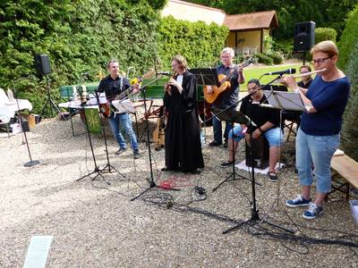 Sie spielt beim Sommergottesdienst im Freien, Kerwe, Einschulung, Tauferinnerung, Gottesdienst mit Konfirmanden, -gespräch/ - Begrüßung, Heiligabend, Weltgebetstag